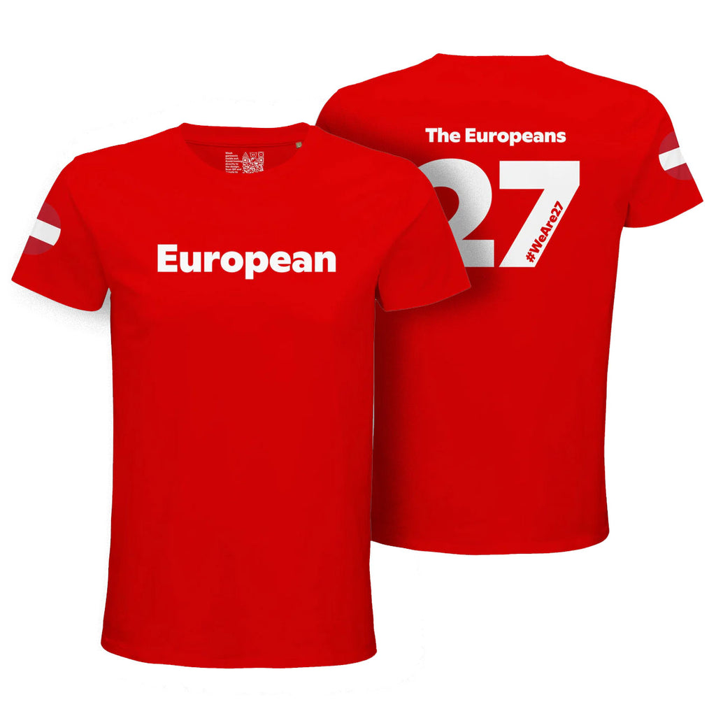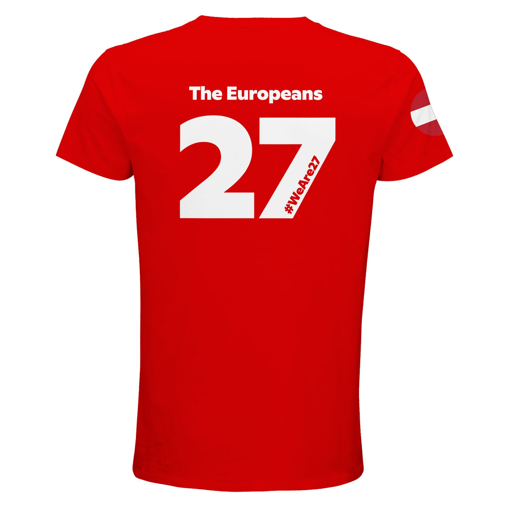 Make a subtle but razor-sharp statement for democracy, inclusivity, social justice, cooperation and economic strength with this national European T-shirt. The number 27 represents the 27 EU countries.