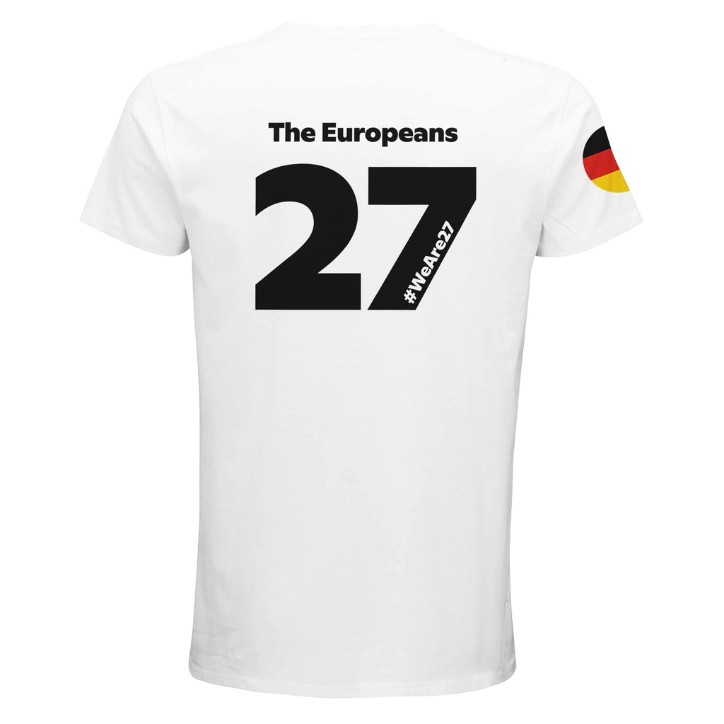 Make a subtle but razor-sharp statement for democracy, inclusivity, social justice, cooperation and economic strength with this national European T-shirt. The number 27 represents the 27 EU countries.